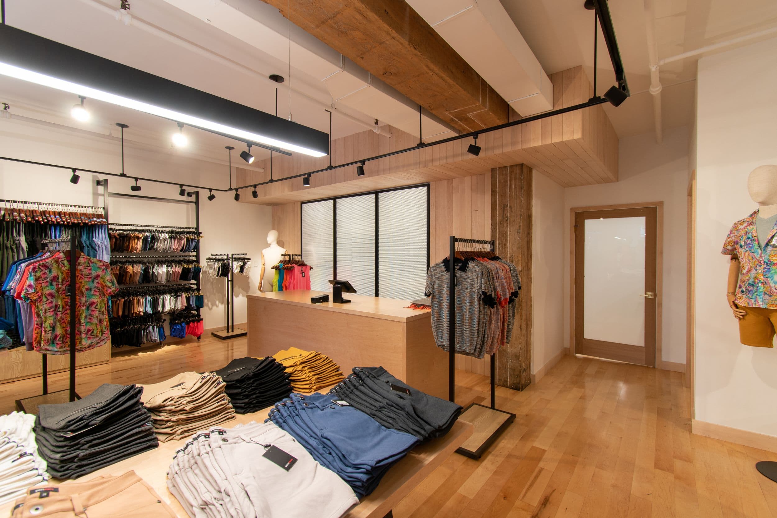 This project brought a much needed interior update to a multi-use building in Boston’s historic SoWa district to serve as a storefront and warehouse location. Careful consideration was paid to brighten up the interior and create a welcoming environment for this boutique clothing store, while working around the existing structural and mechanical systems. Backlit metal panels provide a modern touch and additional lighting, helping to elevate this space into a fine addition to Boston’s boutique retail environment.